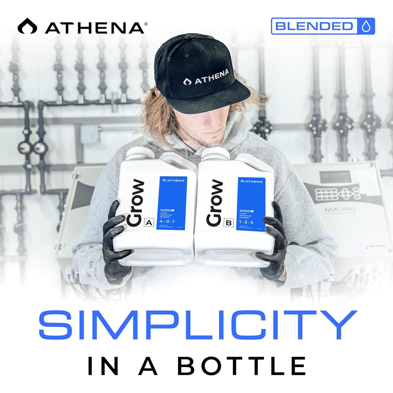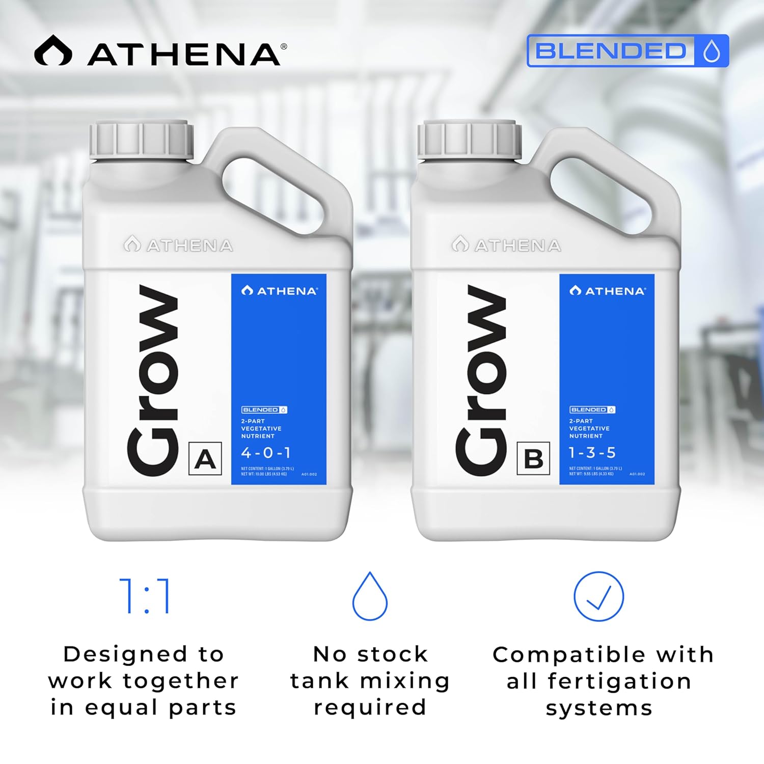 Athena Blended Grow A&B - 2 Part Vegetative Nutrient, Balanced Formula for Vigorous Plant Growth and Non-Flowering Plants | Vegetative Hydroponics Nutrient Solution – 1 Gallon | A 4-0-1 | B 1-3-5