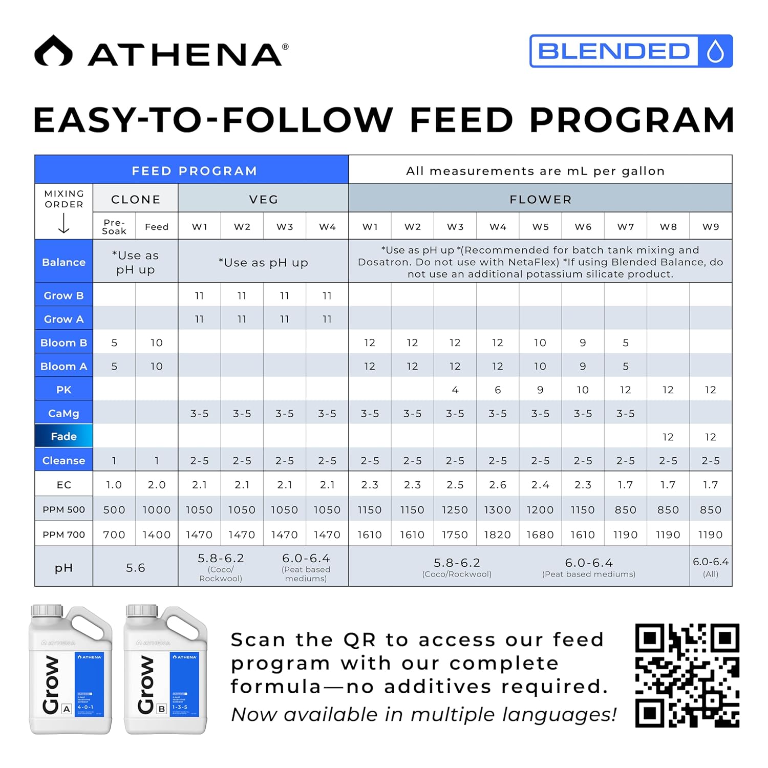 Athena Blended Grow A&B is a precision 2-part vegetative nutrient system engineered for hydroponic growers seeking balanced, vigorous plant development during the non-flowering stage. The formula combines Grow A (4-0-1) and Grow B (1-3-5) to deliver optimal nitrogen and potassium ratios that support robust foliar growth, strong root development, and dense canopy formation. Each 1-gallon kit provides complete macro and micronutrient coverage for consistent results across multiple crop cycles. Ideal for commercial and home hydroponic operations targeting accelerated vegetative growth without flowering triggers.