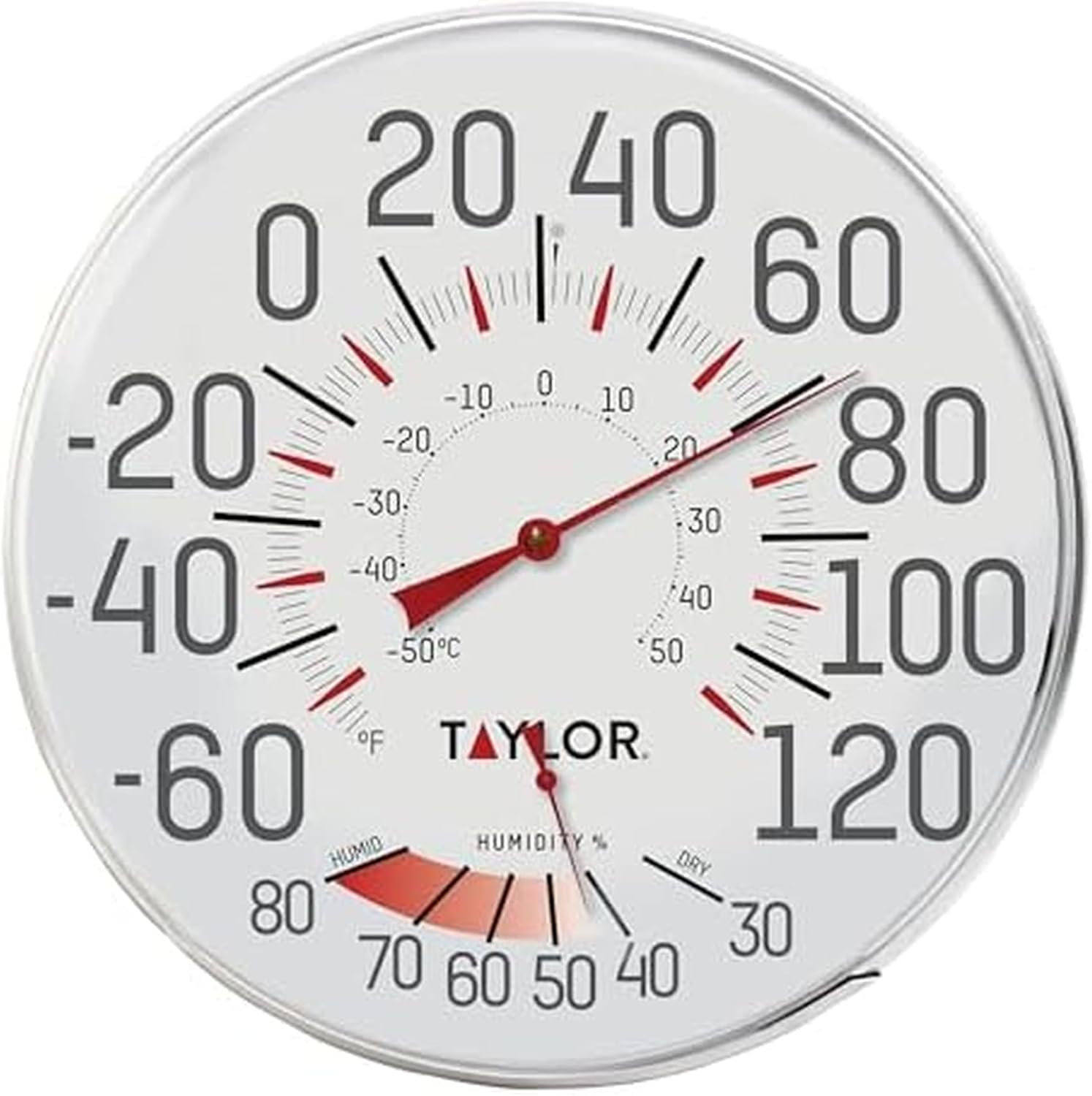 Taylor Precision Products Humidiguide Dial Thermometer – 12-Inch Wall Thermometer & Hygrometer, White